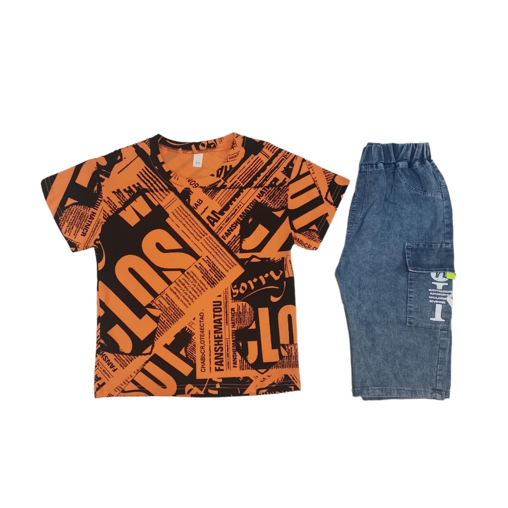 - ست تیشرت شلوارک جدید بچه گانه پسرانه | جنس پنبه دورو درجه یک کد 1022