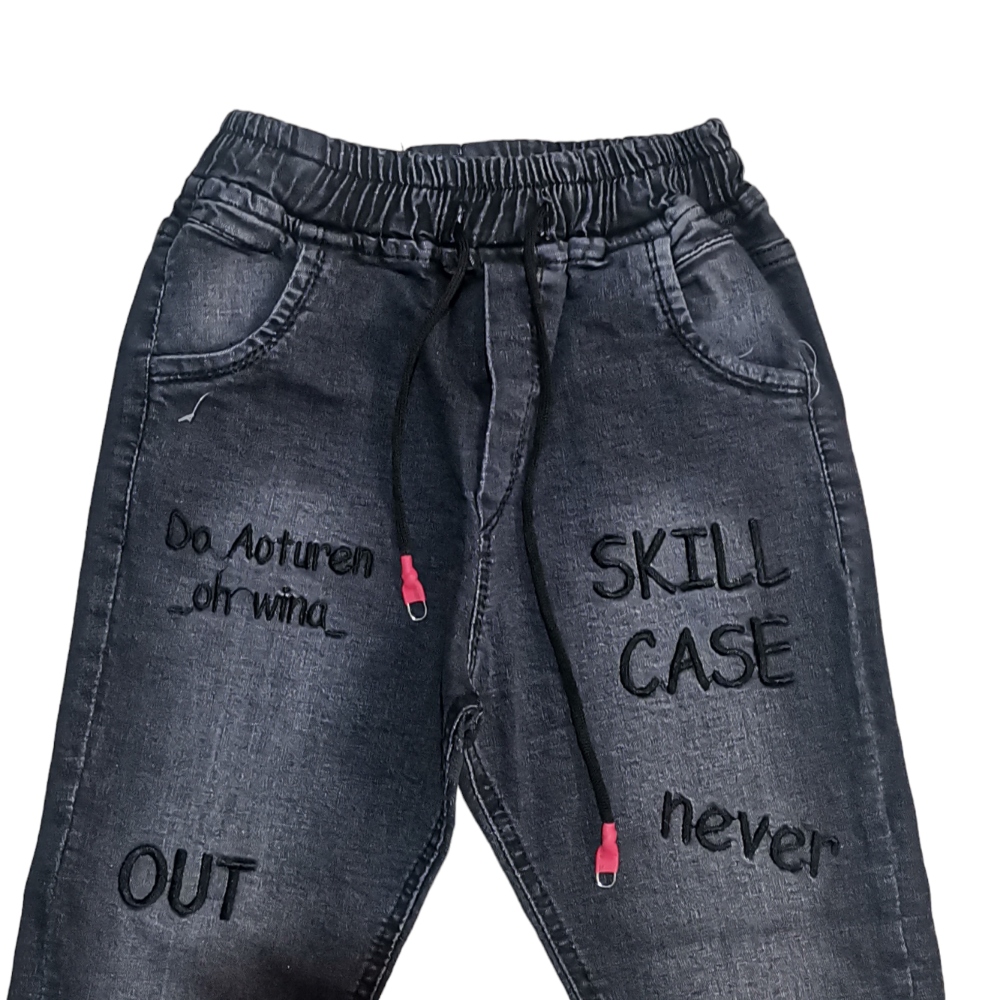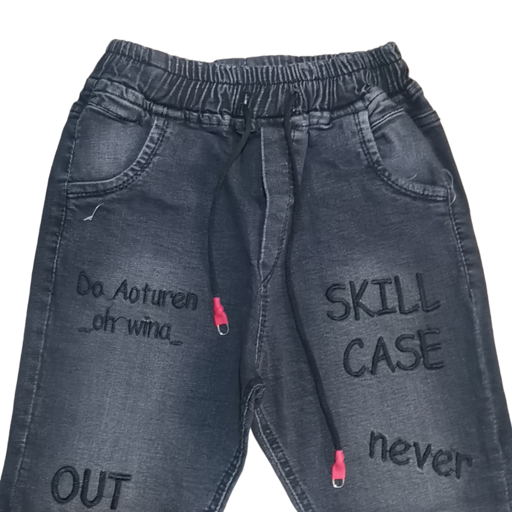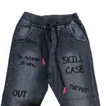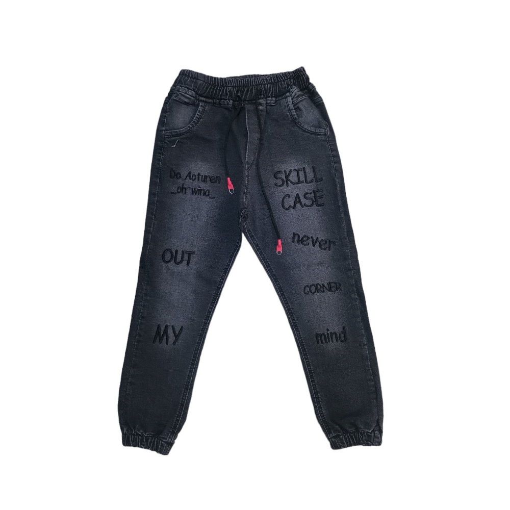 شلوار جین بچگانه مچدار بدون آبرفت میباشد و میتوانید باخیال راحت آن را خریداری کنید. طرح نوشته روی شلوار جذابیت آن را بیشتر کرده و کشی بودن قسمت دمپا و کمر آن باعث راحتتر پوشیده شدن آن میشود. یک کمربند نیز به همراه شلوار وجود دارد که میتوان از آن برای تنظیم سایز شلوار استفاده کرد.